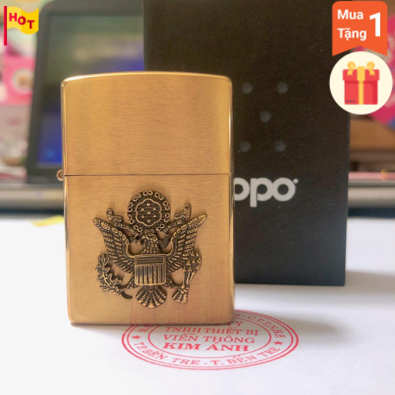 Bật lửa, hộp quẹt Zippo Mỹ Brush Brass Eblem logo Quân Sự Mỹ, Hàng chính hãngVỎ ĐỒNG Brass xước ngangVỏ và ruột trùng ký hiệu, trùng năm sản xuất(lưu ý: năm tháng trên Zippo sẽ thay đổi tuỳ lô nhập)Tình trạng: NEW, không cấn mópHàng zin từ Mỹ có giấy hải quan và biên lai thuế, gửi kèm khi mua hàng cho cả nhà yên tâmHàng sưu tầm, mỗi con mình chỉ có 1 ( ko có cái thứ hai), phải cắt tem ra để test vỏ ruột và lên lửa test búa, đá, độ nhạyMỗi zippo đều có giá trị riêng của nó, không hề giống nhau! chỉ khi sở hữu và Cầm trên tay mới cảm nhận hết được vẻ đẹp và giá trị của nóHình chụp sản phẩm thật và rất chi tiết