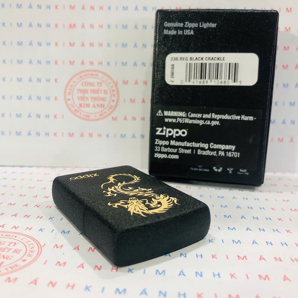 Bật lửa Zippo Mỹ chủ đề Con Rồng Bay Black Crackle, hàng chính hãng có giấy nhập khẩu gửi kèm theo đơn hàng