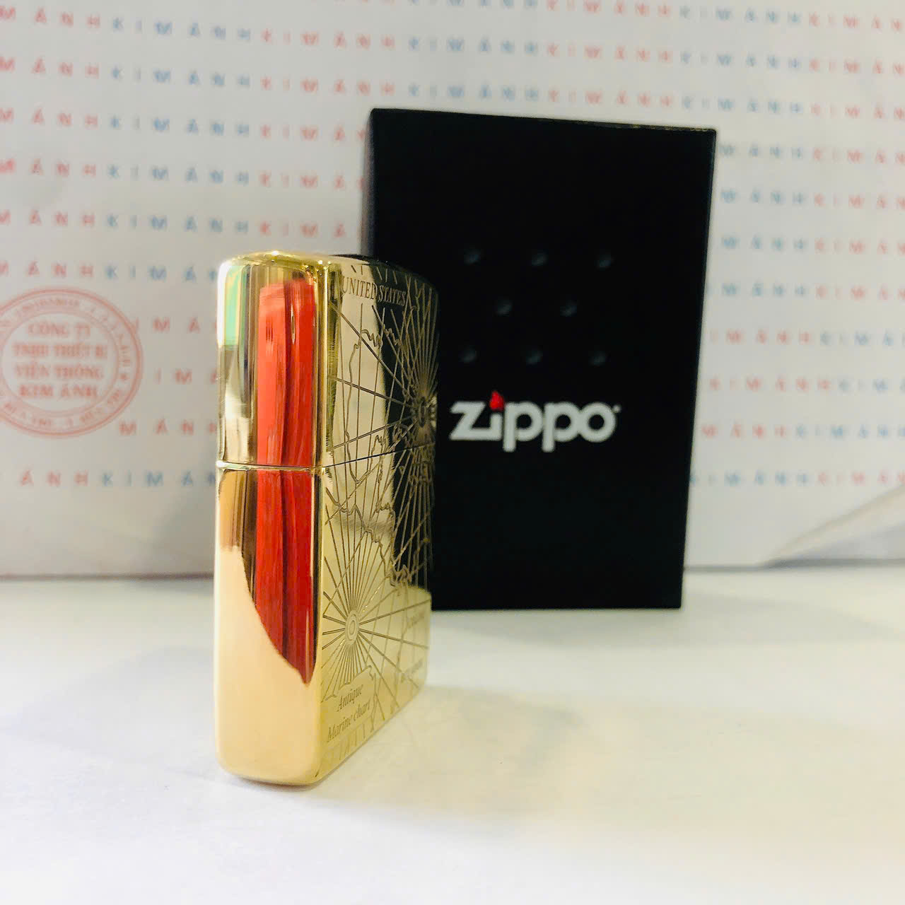 Bật lửa Zippo Mỹ chủ đề La Bàn Hàng Hải, Cam kết hàng chính hãng có giấy Hải quan gửi kèm đơn hàng
