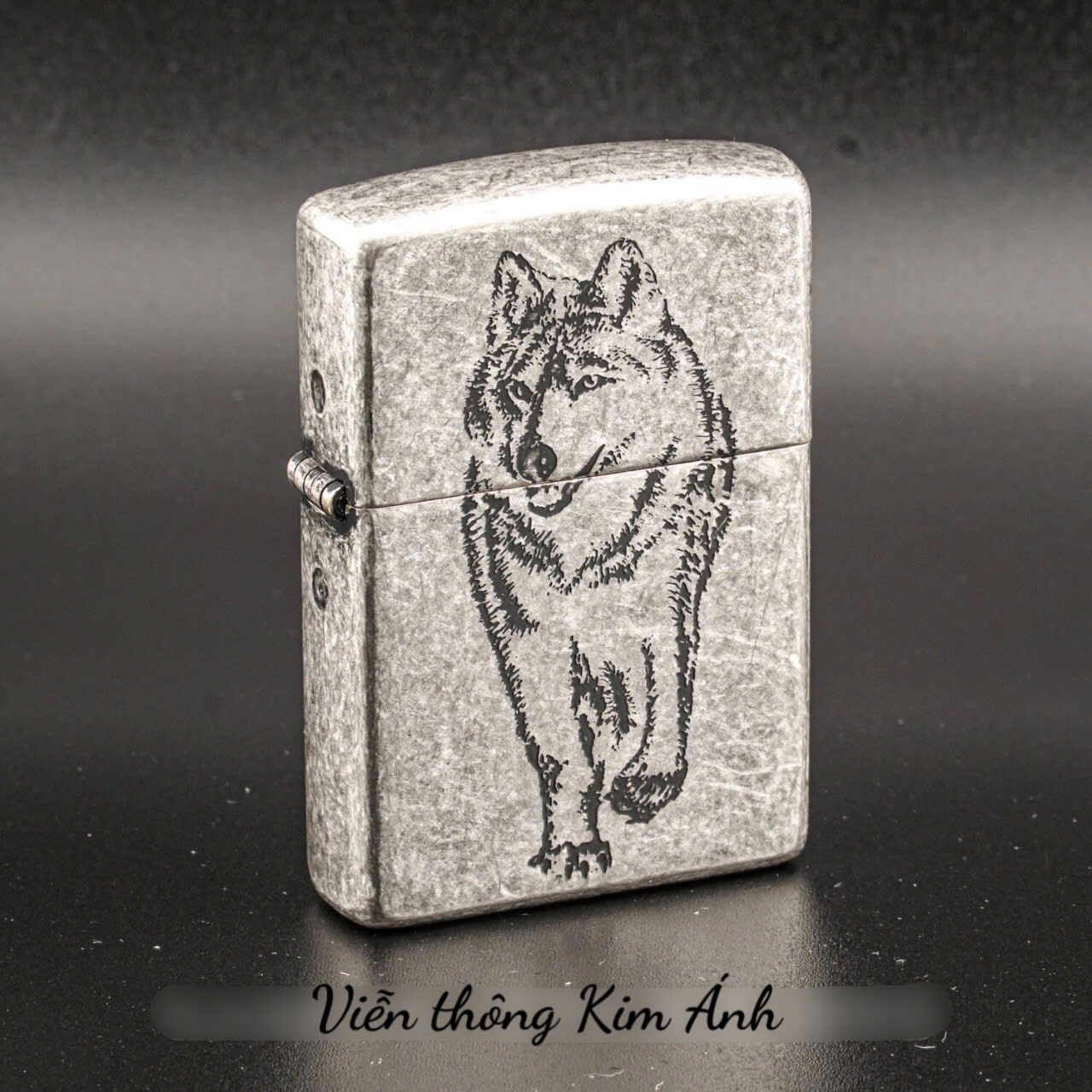 Bật Lửa Zippo SÓI GẤM LOẠI GIẢ CỔ, Vỏ bằng đồng, ruột thép không gỉ, Có Tem Đỏ