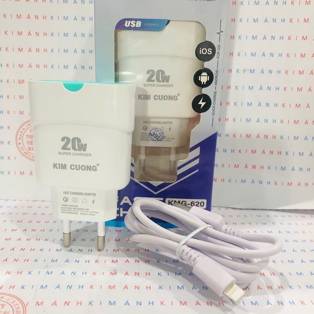Bộ sạc nhanh Kim Cương KMG 620 công suất 20W chân cắm IOS, Hàng chính hãng có hóa đơn VAT đầu vào