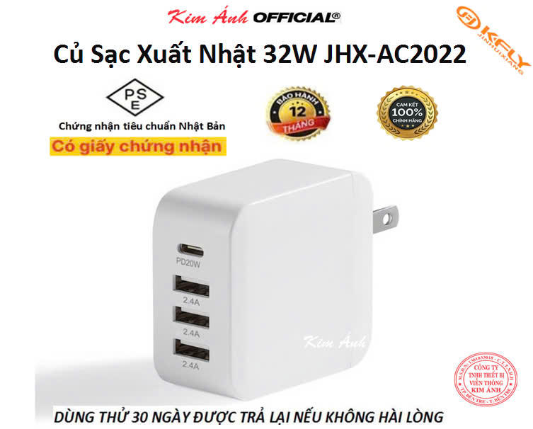 Củ sạc xuất Nhật 33W JHX-AC2022, đạt chứng nhận PSE tiêu chuẩn Nhật Bản, dùng thử 30 ngày, bảo hành chính hãng 12 tháng,