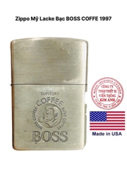 Hộp quẹt Zippo Mỹ BOSS COFFEE Lacke bạc, XIII la mã sản xuất 1997, Hàng chính hãng nhập Mỹ