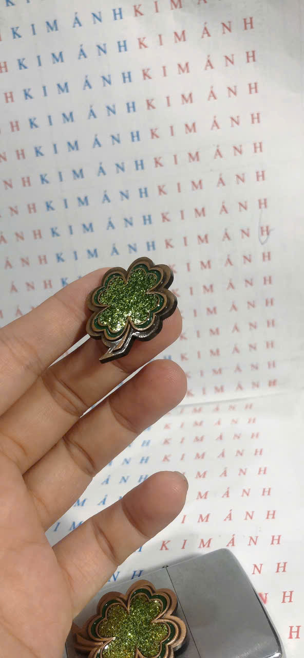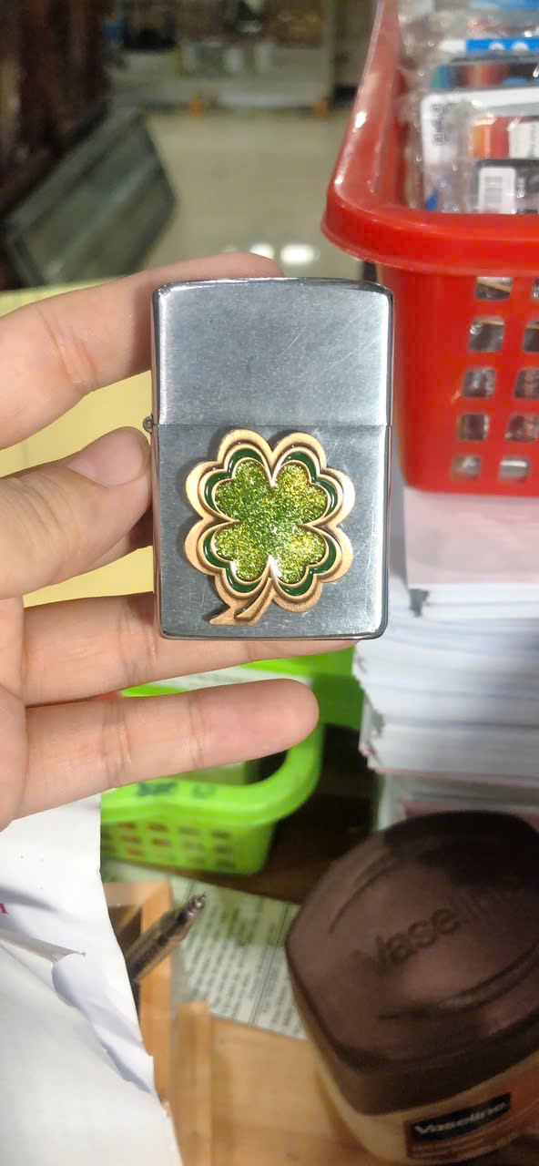 Miếng dán Eblem trang trí Zippo chủ đề Cỏ Bốn Lá may mắn chất liệu hợp kim nhôm, hàng chuẩn zin Mỹ