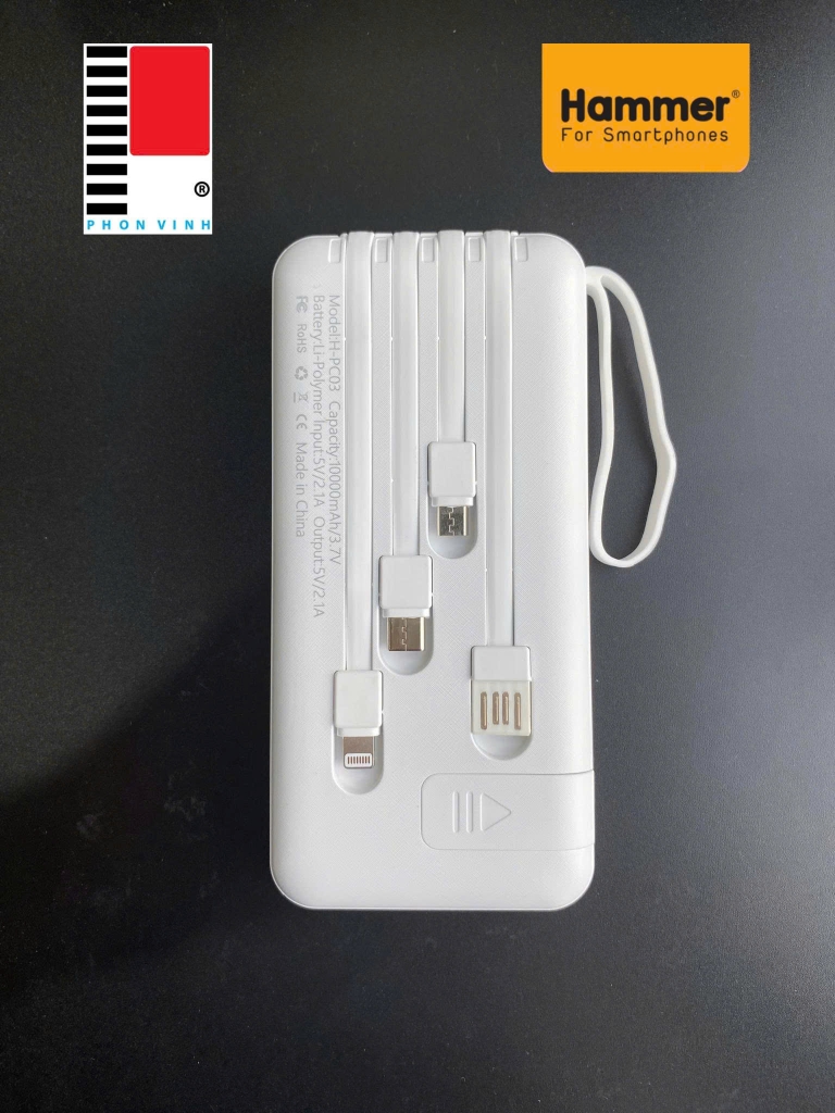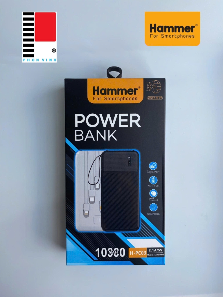 Pin Sạc Dự Phòng Hammer H-PC03 2.1A/5V, dung lượng10.000mAh, hàng chính hãng bảo hành 12 tháng