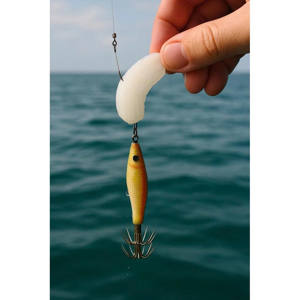 Với kết cấu dẻo dai, màu trắng bắt sáng, thạch rất thu hút mực trong môi trường biển đêm.