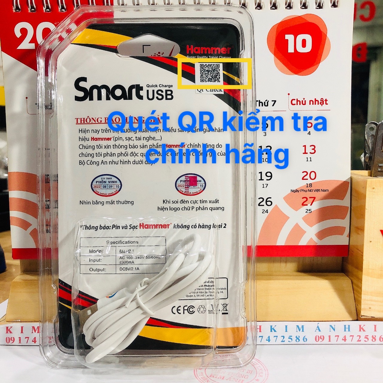 L- Bộ Sạc hiệu Hammer 2.1A Chân cắm L, Hàng Chính Hãng bảo hành 12 tháng